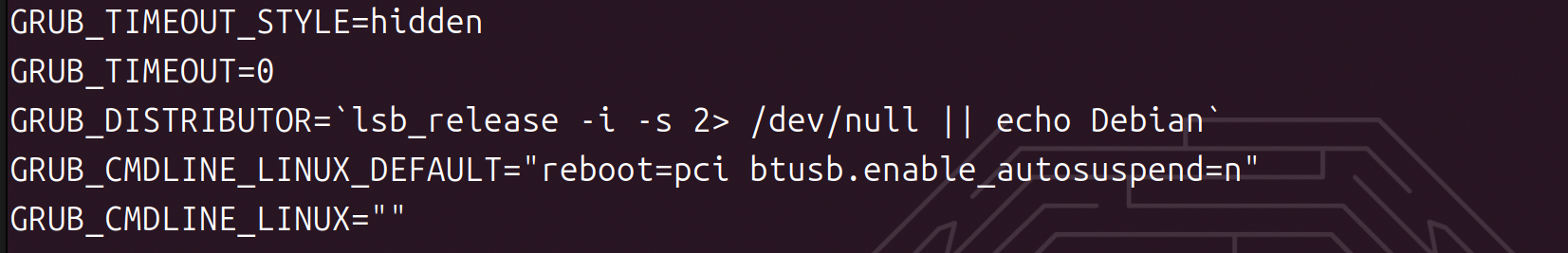 GRUB_CMDLINE_LINUX_DEFAULT="btusb.enable_autosuspend=n"